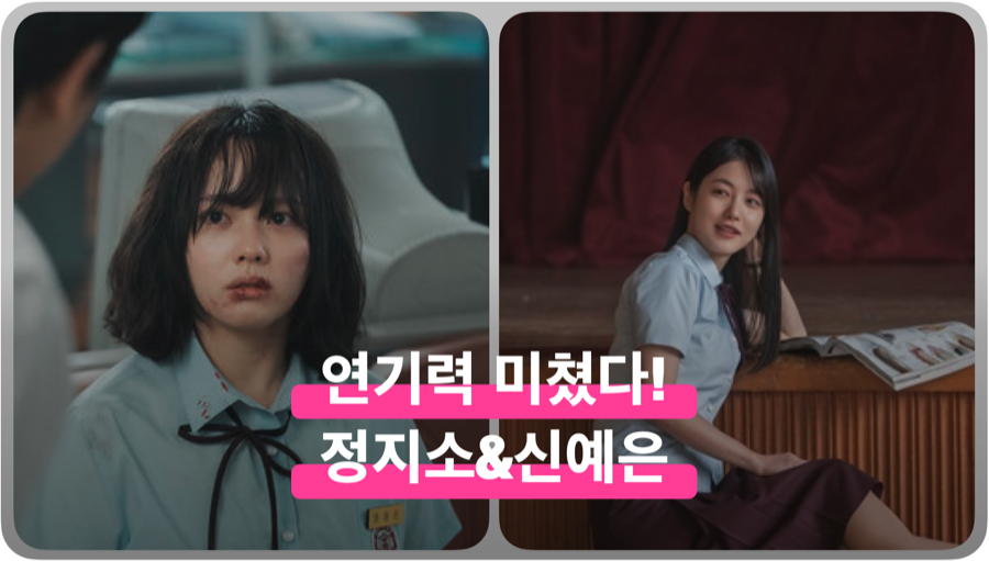학교폭력을 시작으로 한 처절하고 치명적인 복수극을 그린 넷플릭스 화제작 <더 글로리>에서 주인공 송혜교와 빌런 임지연의 학창시절 아역 역할을 맡은 두 배우 정지소와 신예은의 연기력에 대한 극찬이 이어지고 있습니다. 어디선가 많인 본듯 아닌듯 하지만, 이번 <더 글로리>에서 맹활약한 두 배우에 대해 자세히 알아볼게요!
