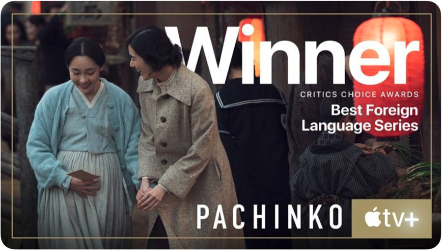 '파친코'가 결국 잭팟을 터트렸습니다. 애플TV+ 오리지널 시리즈로 제작되 국내에서도 큰 인기를 모았던 '파친코'가 미국 크리스틱스 초이스 어워즈(Critics Choice Awards)에서 최우수 외국어 드라마 부문 수상의 영예를 안았는데요. 크리틱스초이스어워즈는 미국과 캐나다의 방송, 영화 비평가들이 TV와 영화 부문으로 나누어 작품성을 평가하는 상입니다.