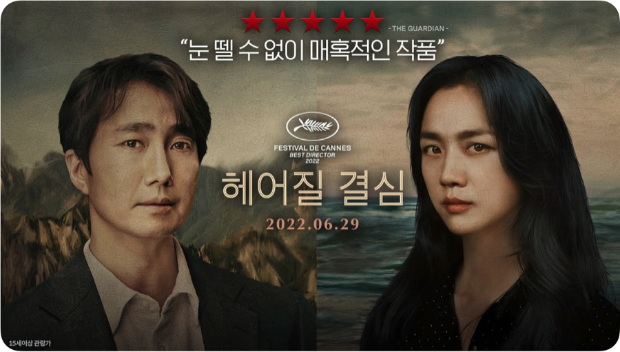 김민희와 김태희의 파격적인 등장으로 국내외 영화팬들의 사랑을 받았던 <아가씨> 이후, 6년만에 나온 박찬욱 감독의 장편 영화이다. 감독 뿐만이 아니라 박해일, 탕웨이를 비롯한 배우들의 연기도 훌륭했던 이 작품은 칸 영화제를 비롯해 대종상, 청룡영화상 등 2022년도 각종 국내외 시상식을 분야별로 휩쓸었지만, 국내 개봉시기가 좋지 않았던 탓인지 흥행성적은 그리 높지 않았다. 작품성에 비해 아직 대중의 사랑이 덜 채워진 작품인만큼 기회가 된다면 언제든 관람을 추천한다.